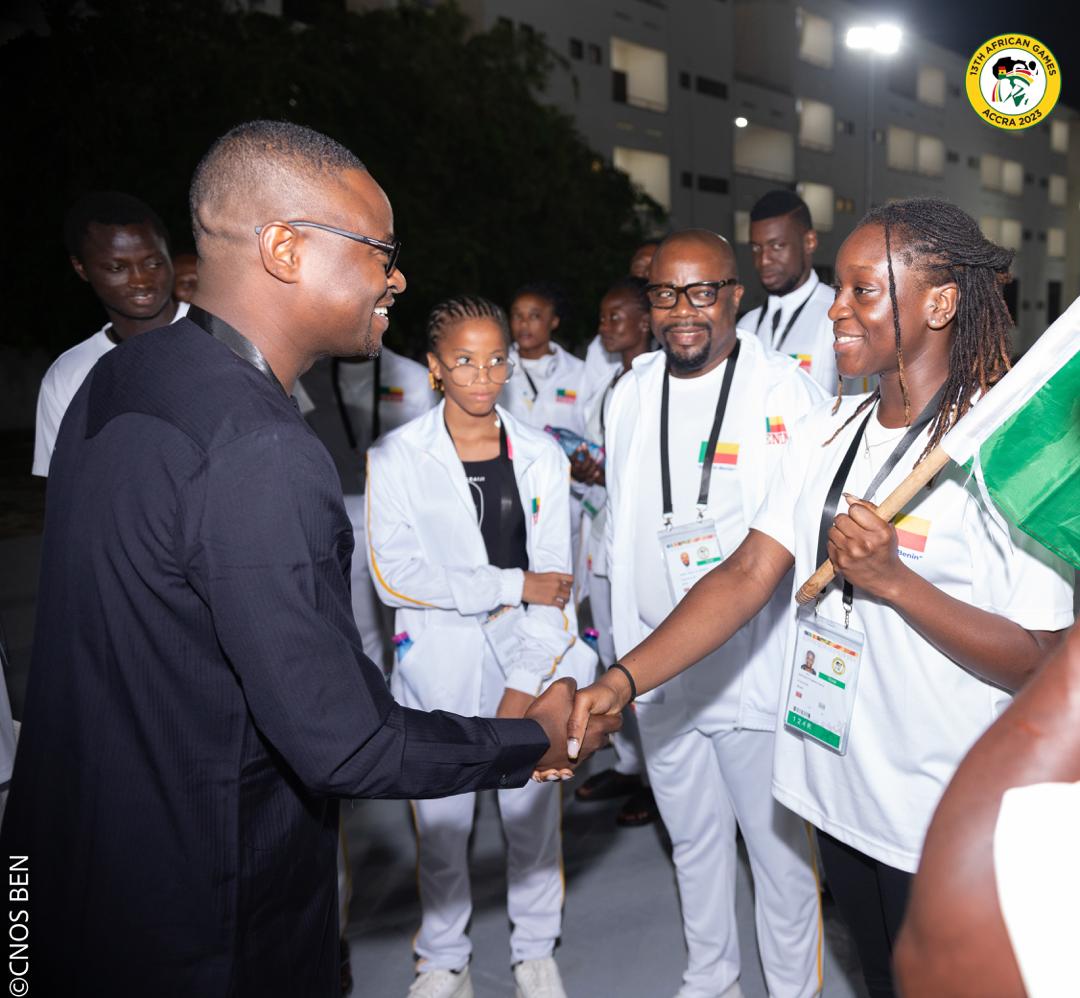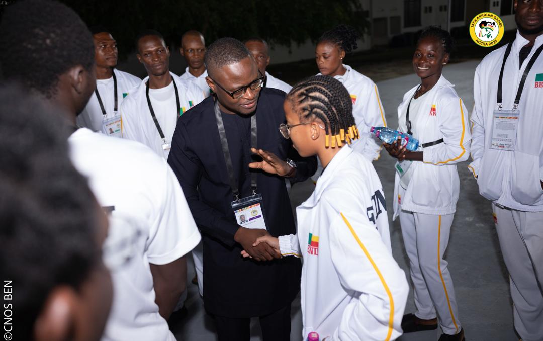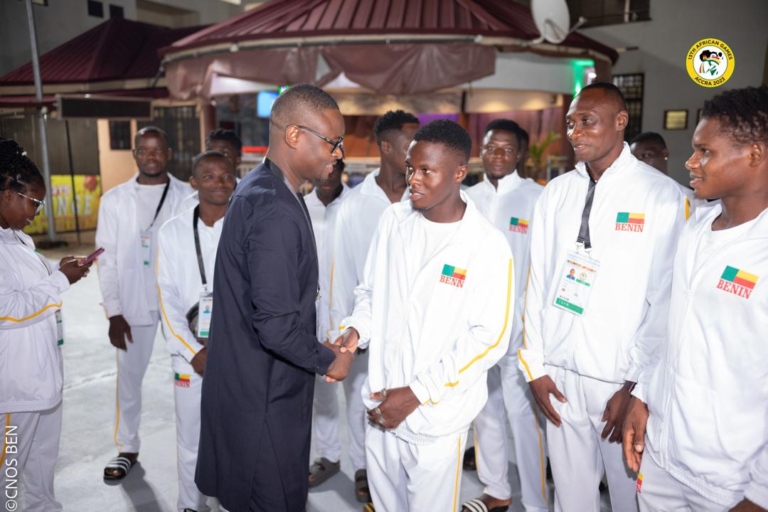 Le Ministre des Sports Benoît Dato au Quartier Général du Bénin pour les 13èmes Jeux Africains, Accra 2023