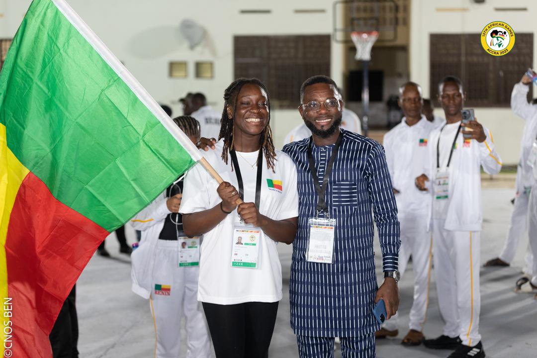 Le Ministre des Sports, Benoît Dato, s’est rendu au quartier général du Bénin dans le cadre des 13èmes Jeux Africains, Accra 2023. Accompagné du Président du Comité National Olympique et Sportif Béninois (CNOS Ben), Julien Minavoa, le chef du département des Sports a galvanisé la troupe avant de procéder à la remise officielle du drapeau. Il est important de rappeler que la cérémonie officielle d’ouverture des Jeux se déroulera ce vendredi 08 mars 2024 à partir de 15h.