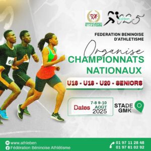 Le stade Général Mathieu Kérékou, cœur battant du sport béninois, se prépare à accueillir l’élite de l’athlétisme national. Les 8 et 9 août 2025, la Fédération Béninoise d’Athlétisme (FBA) donne rendez-vous aux passionnés pour son grand meeting annuel : les Championnats nationaux.