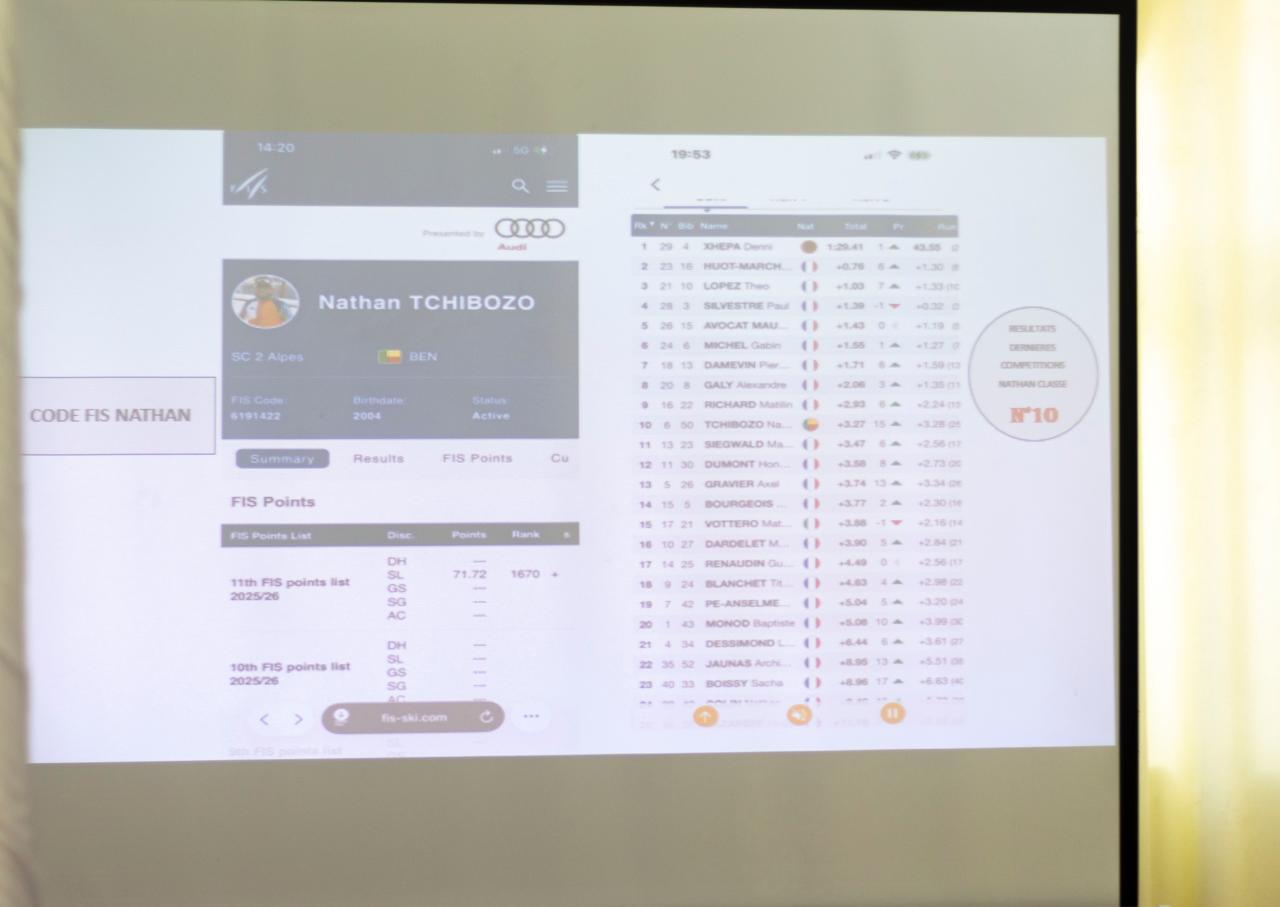 « Je saisis donc l’occasion pour adresser toutes mes félicitations à l’athlète, à ses encadreurs techniques, à ses parents et aux responsables de l’Association Sportive de Ski d’Abomey-Calavi. »