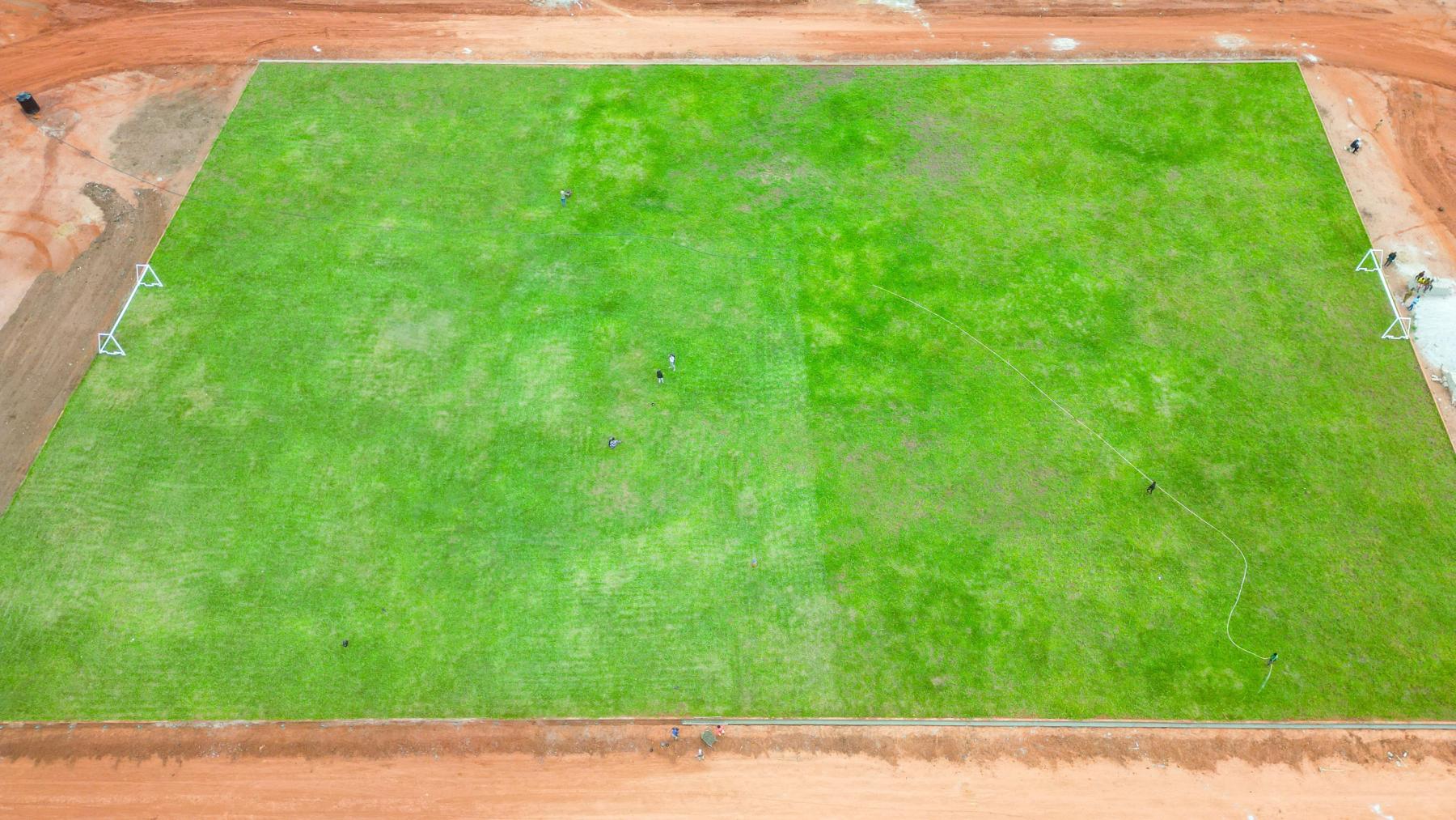 « Il reste la clôture, le traçage des terrains et le nettoyage. Nous avons ajouté des travaux comme les vestiaires, les toilettes et la pose de pavés autour du bâtiment principal. »