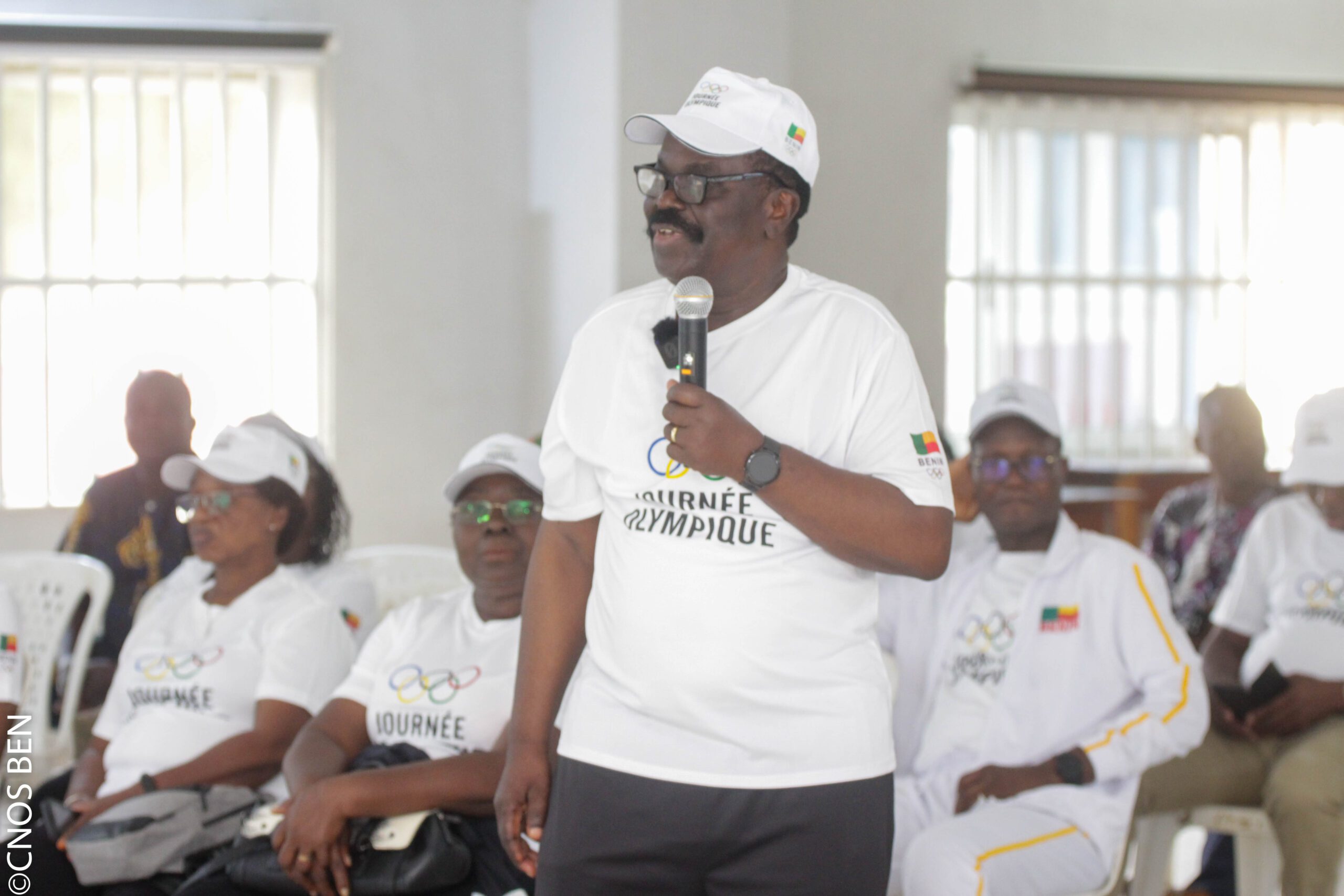 C’est dans la salle de conférence que le président Julien V. Minavoa, figure tutélaire du mouvement olympique béninois, a livré l’un des temps forts du jour : une communication dense et pédagogique sur l’histoire de la Journée Olympique, la signification des anneaux, les valeurs fondatrices de l’Olympisme – Excellence, Amitié, Respect.