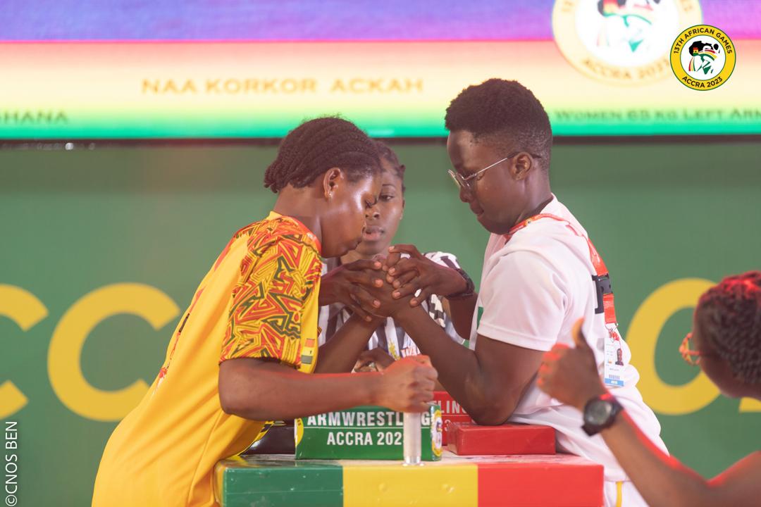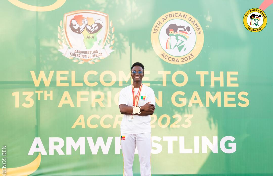 Emmanuella Marie Rose Laleye du Bras de Fer Sportif a brillé lors des 13èmes Jeux Africains Accra 2023, qui se déroulent actuellement au Ghana. Grâce à sa performance exceptionnelle, l’hymne national du Bénin a retenti à Accra. La jeune athlète, soutenue par le ministère des Sports et le Comité National Olympique et Sportif Béninois (Cnos Ben), a décroché la première médaille d’or du Bénin aux Jeux, et la seule pour l’instant. Elle a été sacrée championne au Bras de Fer Sportif Main Gauche, dans la catégorie des 65 kg, en dominant toutes ses adversaires ce vendredi 15 mars 2024. « Mon objectif était de confirmer mon titre de championne d’Afrique, et je l’ai réalisé pour le Bras de Fer Sportif Main Gauche. J’espère réitérer cette performance demain pour la Main Droite », s’est réjouie Emmanuella Marie Rose Laleye.